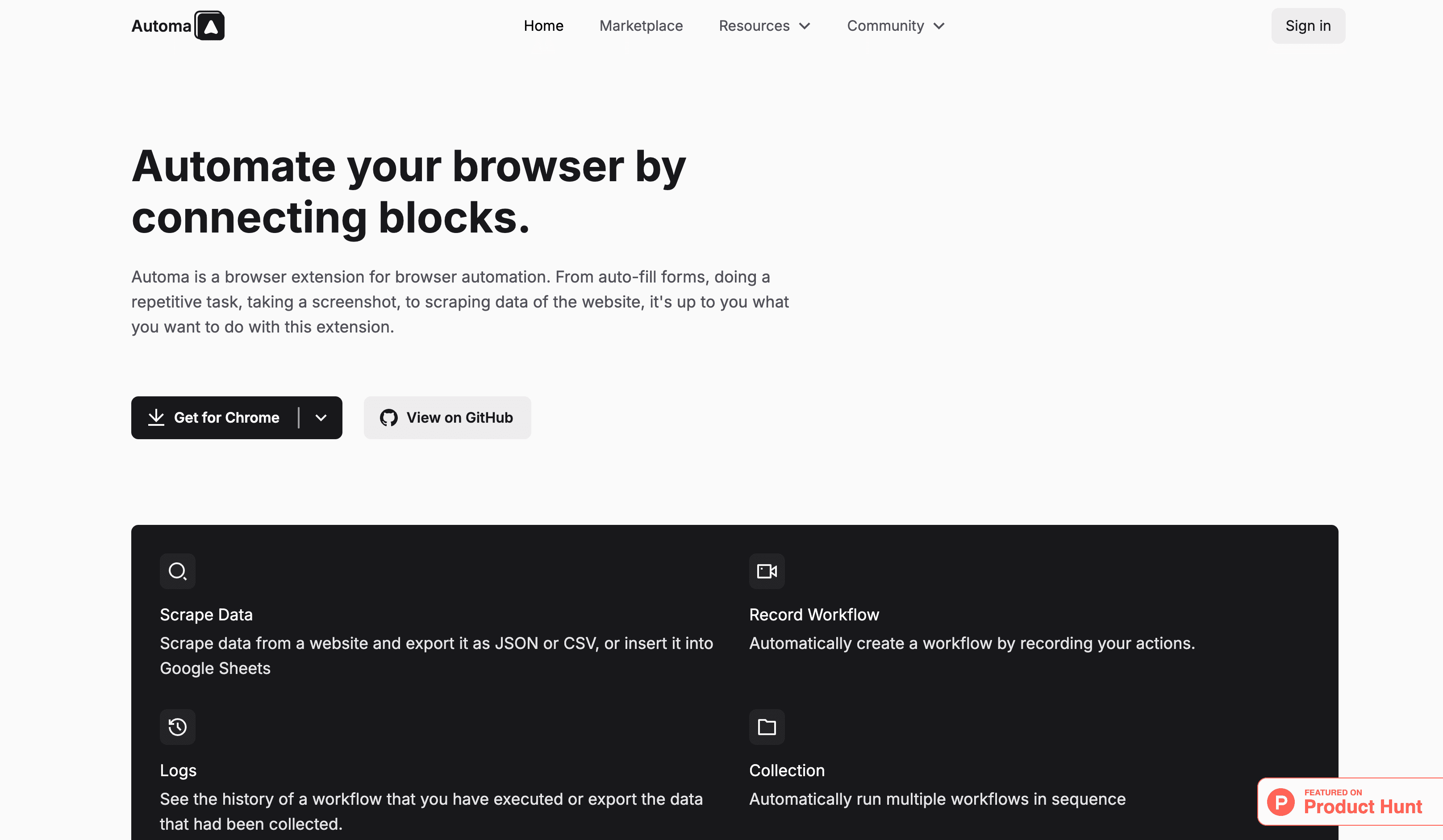 Automa is a browser automation tool that allows you to perform tasks like automating repetitive actions, filling out forms automatically, capturing screenshots, or extracting data from websites — the options are up to you.