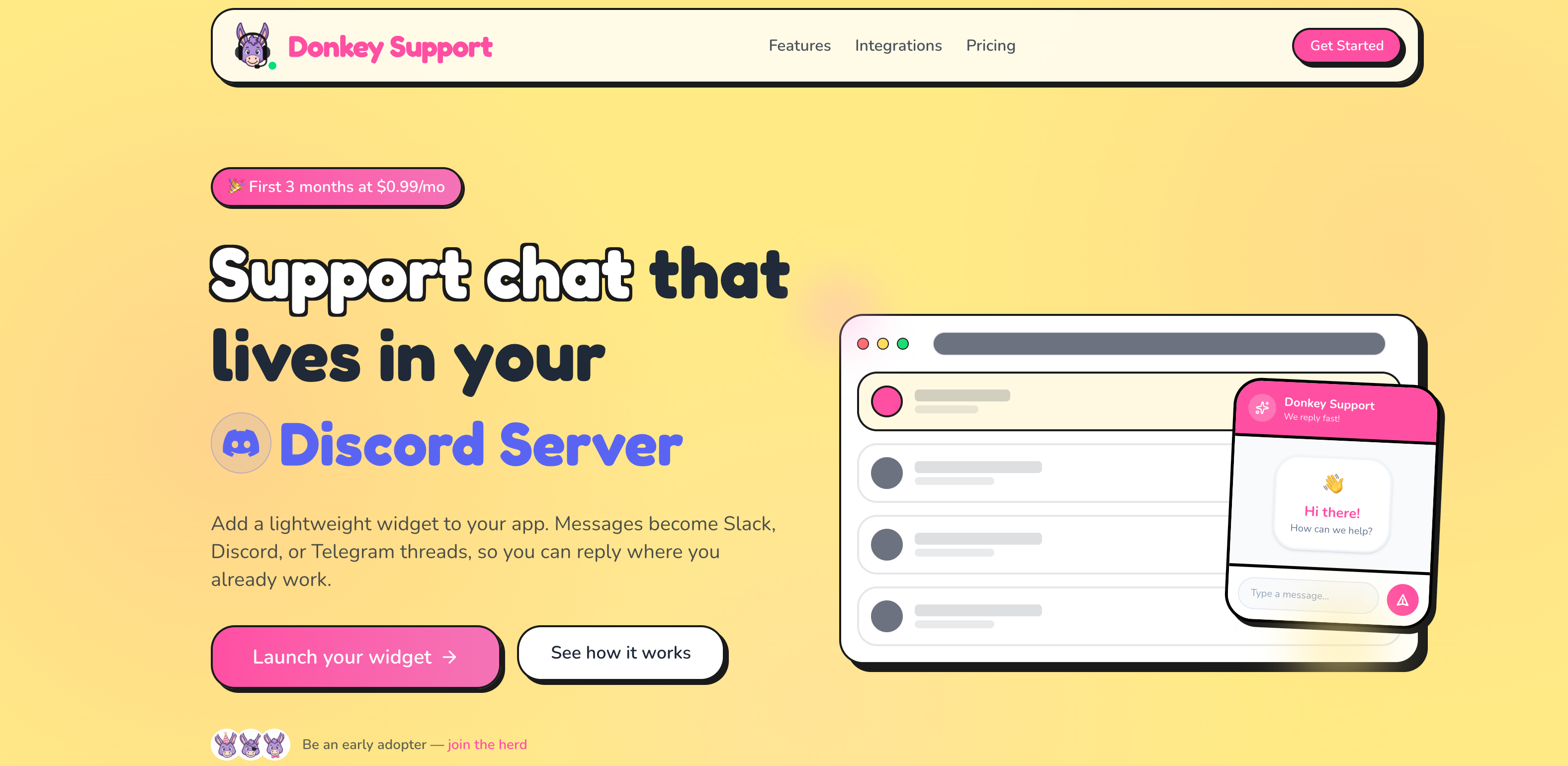 Donkey Support is a lightweight customer support widget you can embed in your web app with a simple script tag or React component. It connects Slack, Discord, or Telegram so conversations appear as threads you can reply to directly from the channel you already use, providing an inbox-like experience across platforms. The widget supports branding customization, visitor identification with metadata, webhooks for automation, and a ticket dashboard with real-time sync. Built for indie developers and small teams, it offers simple pricing with no per-seat fees.