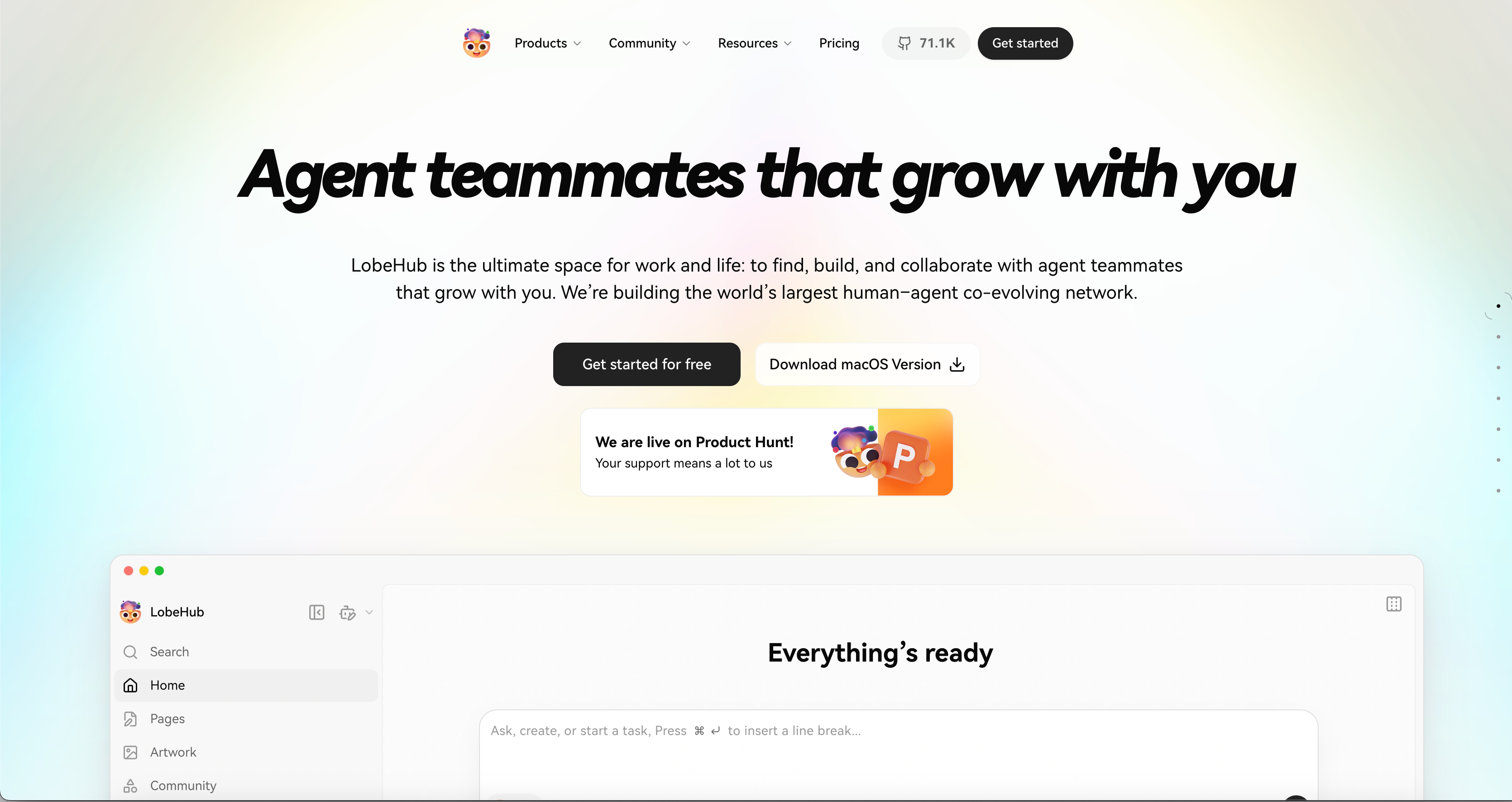 LobeHub is a platform for creating, organizing, and collaborating with agent teammates that grow with your organization, enabling end-to-end task collaboration, multi-modal workflows, and continual learning between humans and agents.