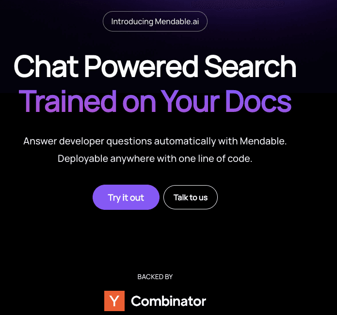 Mendable is a chat powered search bar that provides custom answers to developer questions based on their documentation. It can be deployed anywhere with one line of code and continuously improves itself over time through community and admin feedback. It also provides reports and insights to identify blockers in the documentation and improve the developer experience.