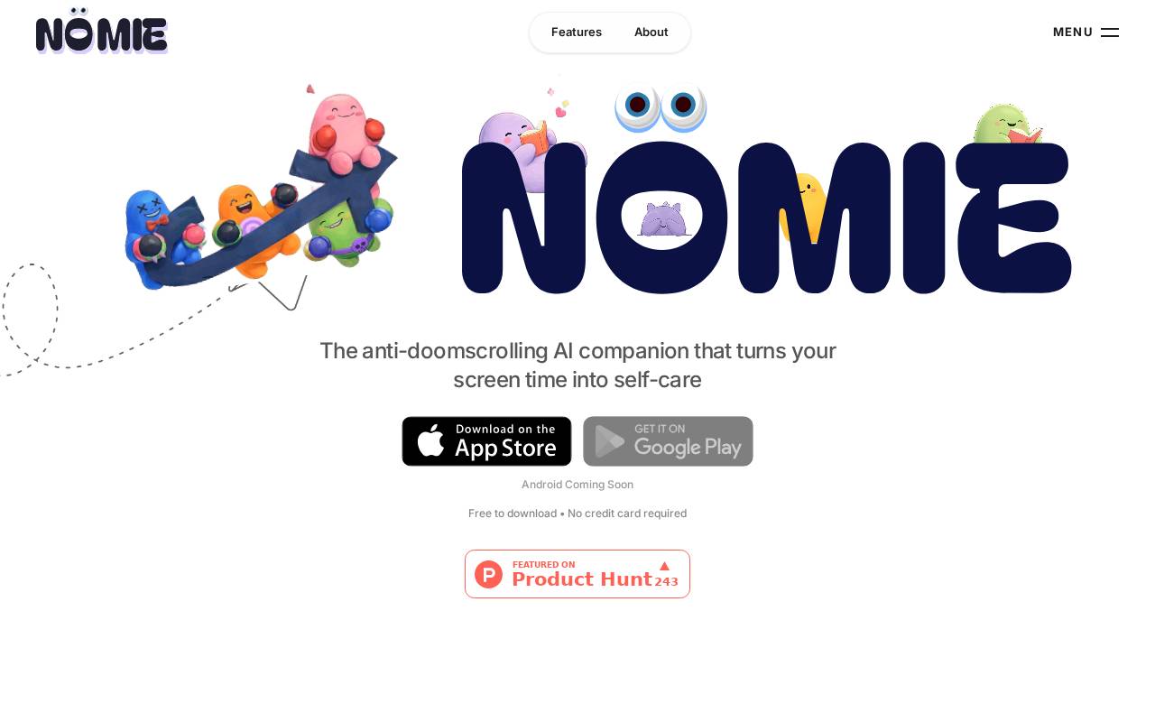 Nomie is an AI wellness companion that replaces endless doomscrolling with mindful self-care, offering somatic fidgets, breathing tools, and gentle neuro-regulation guided by polyvagal theory to help you feel calmer and more centered.