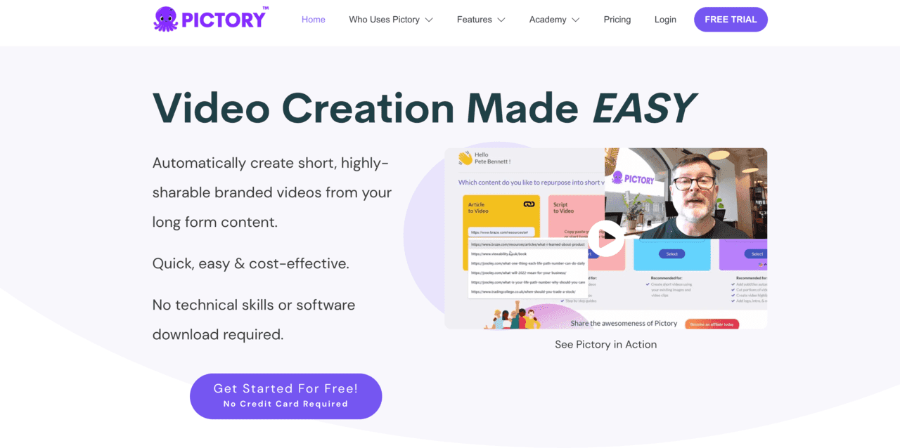 Pictory's powerful AI enables you to create and edit professional quality videos using text, no technical skills required or software to download