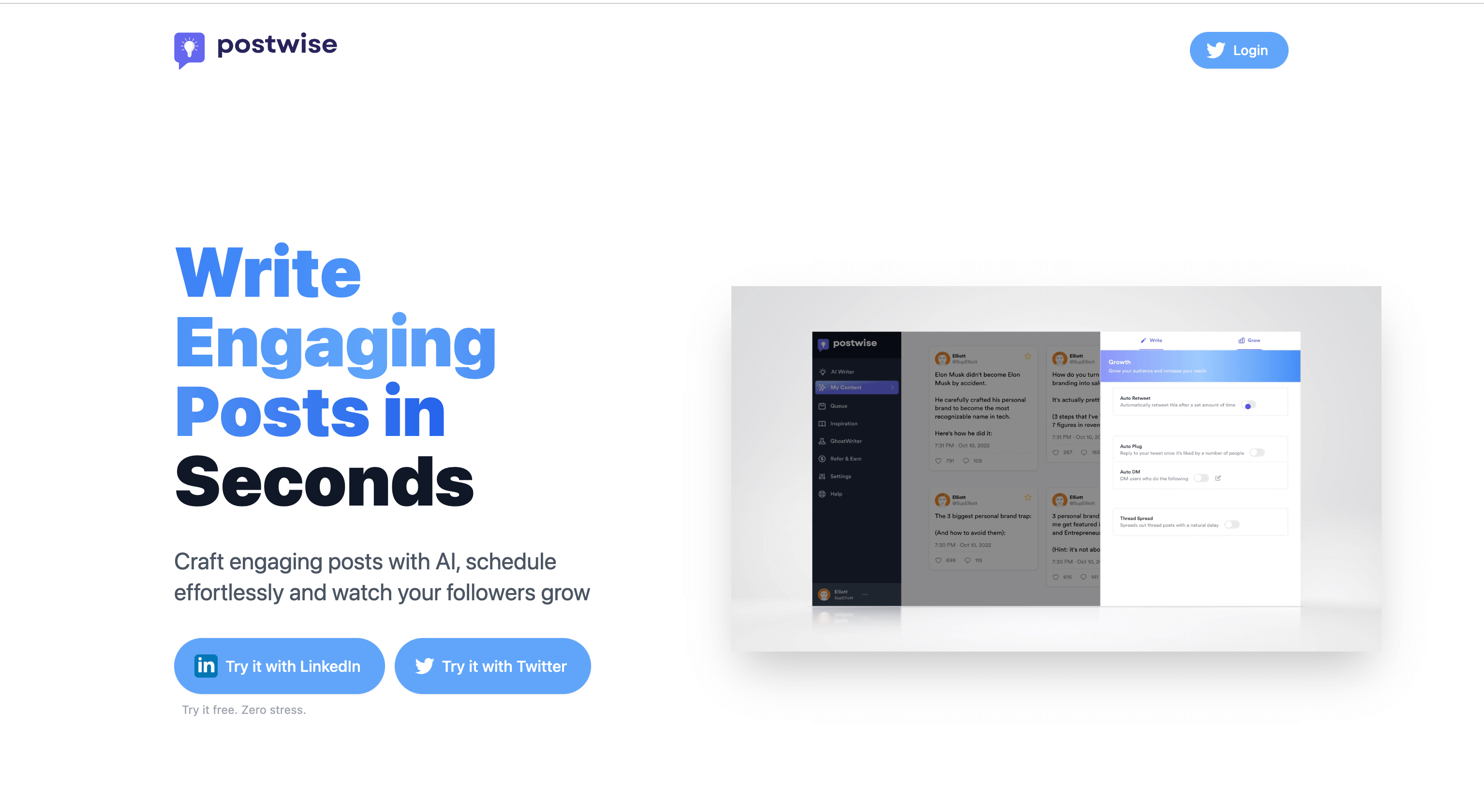 Twitter AI tool. Write tweets, schedule posts, and grow your following using AI.