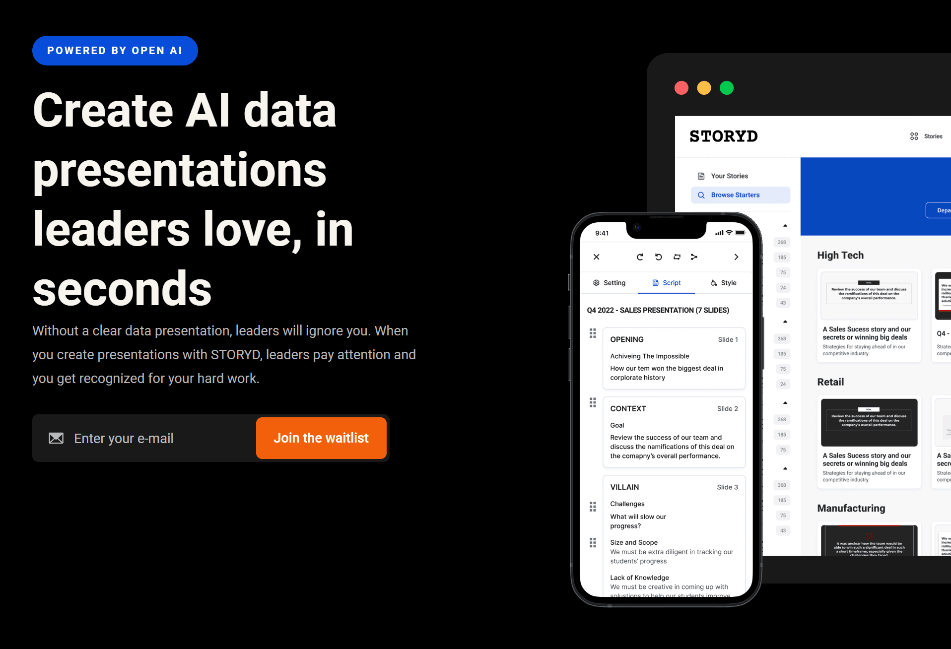 StoryD is a tool that helps users create AI-powered data presentations that are engaging and impactful. It enables users to quickly create presentations that will capture the attention of leaders, helping them get recognized for their hard work.