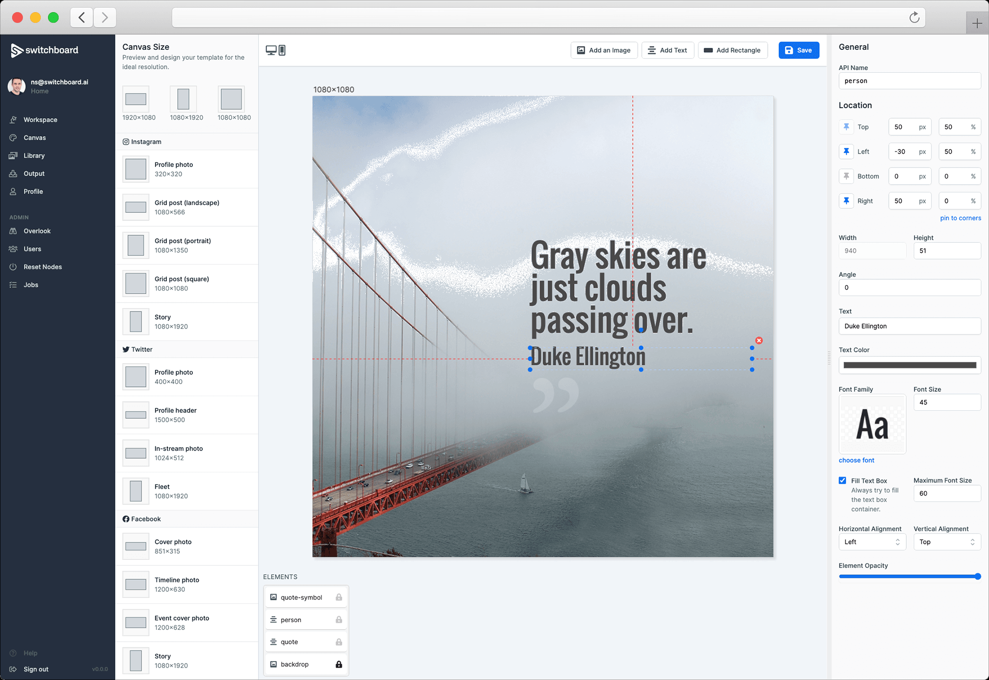 Switchboard Canvas is a media toolkit for digital creators, marketers, and automation gurus that allows users to automate image production using the API, or no-code tools like Zapier or Pabbly Connect. It also features a Template Designer to quickly create templates, as well as Tweet to Image and Twitter Headers. Users can also upload images and fonts, as well as translate text on the fly.