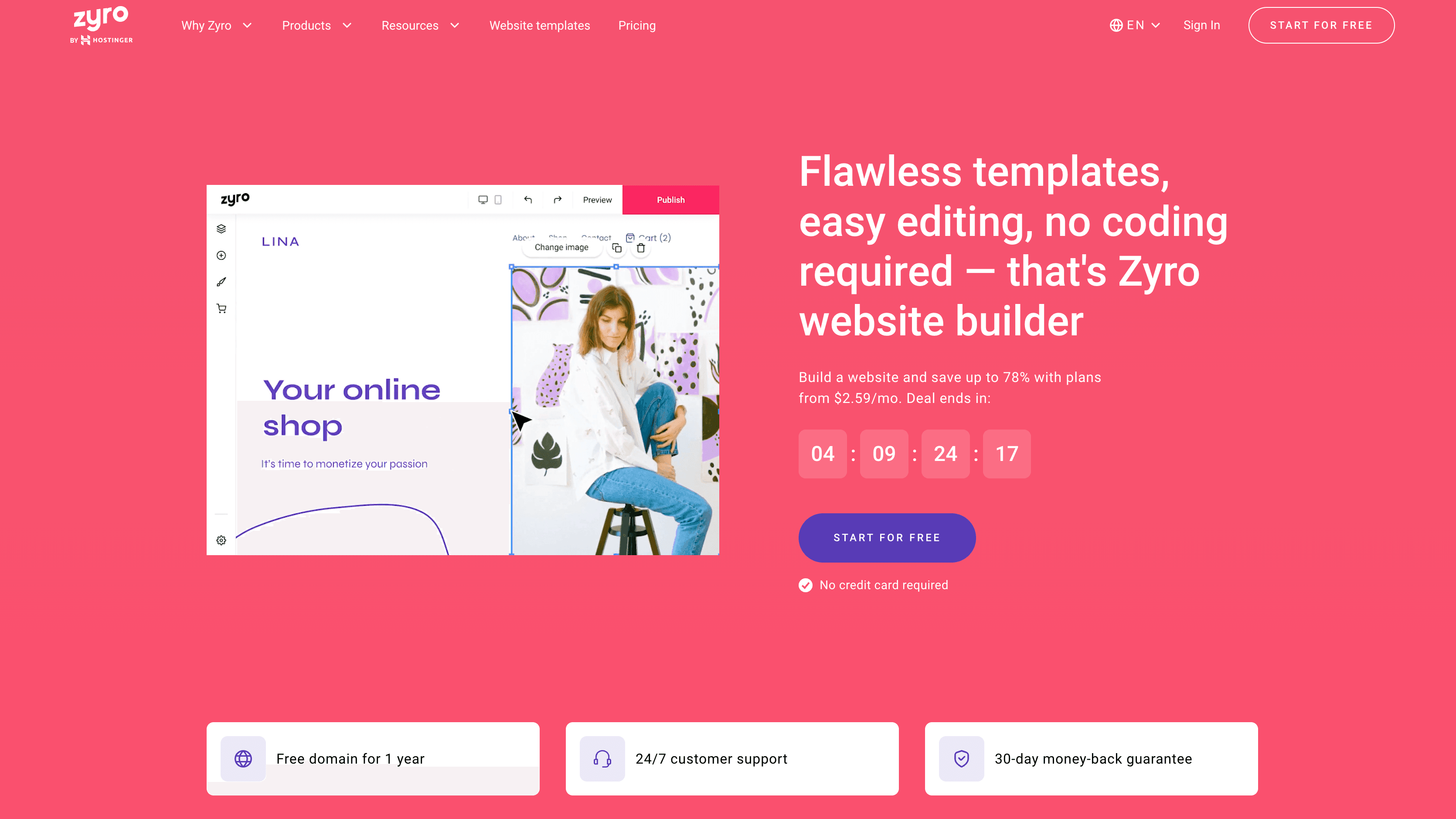 Zyro is a website builder platform used by over 250,000 small business owners. It offers designer-made templates and tools to create websites or online stores. Key features include fast website load speeds, 24/7 customer support, and a powerful eCommerce builder with inventory management and business growth tools. The platform requires no coding skills, offers free web hosting, and ensures all sites are search engine optimized and mobile responsive.